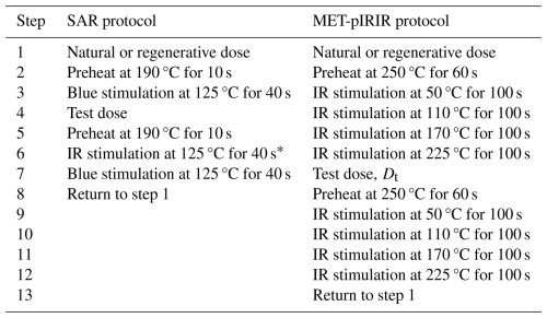 Table 1SAR (Murray and Wintle, 2000) and MET-pIRIR (Li and Li, 2011) protocols used to date quartz and feldspar aliquots, respectively.