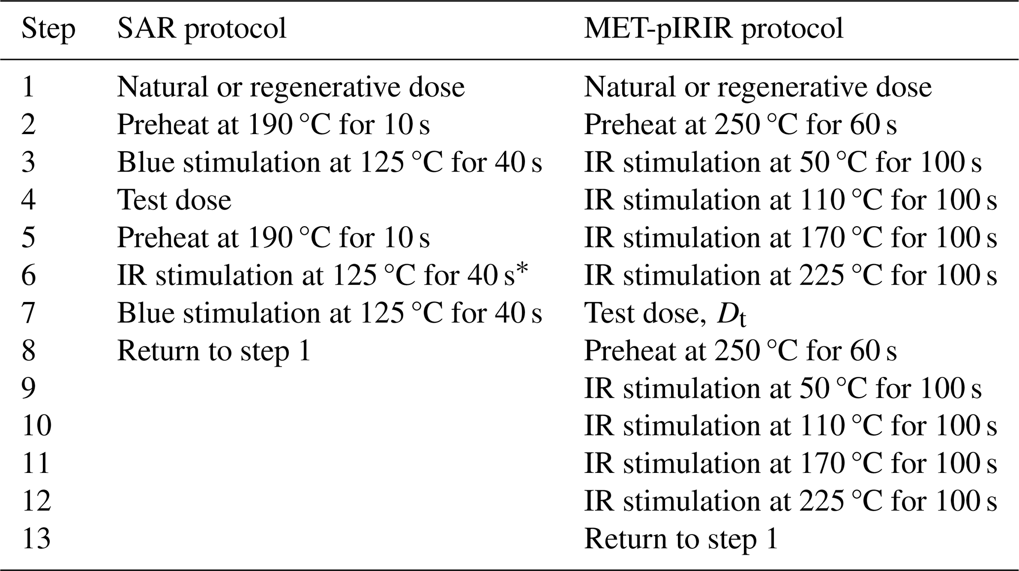 ∗ IR stimulation was applied only in the last regenerative dose step following Duller (2003).
