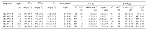 Table 1Luminescence-dating dose rate, equivalent dose, and age results.